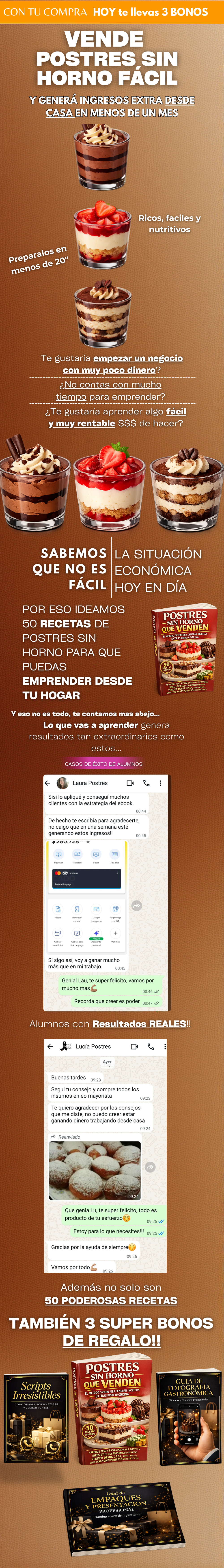 postres sin horno que venden + 3 bonos: gana dinero extra desde casa